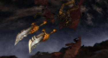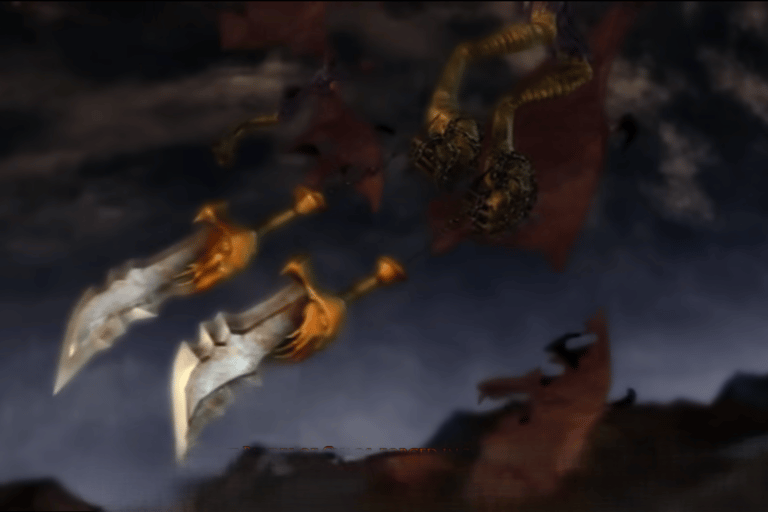 Ares aceitou o pedido e, descendo do Olimpo, massacrou os bárbaros. Para selar o pacto, ele concedeu a Kratos as icônicas Lâminas do Caos, armas presas a correntes que queimaram sua pele ao serem fixadas, marcando-o para sempre.