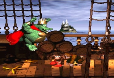 💬 E aí, você lembra daquele momento eletrizante quando os Kongs enfrentaram King K. Rool pela primeira vez no Galeão Gang-Plank? Qual foi a sua parte favorita dessa aventura inicial de Donkey Kong Country? Conta pra gente nos comentários! 👇