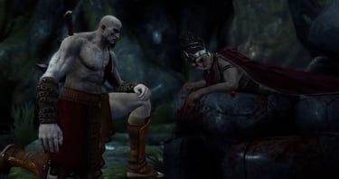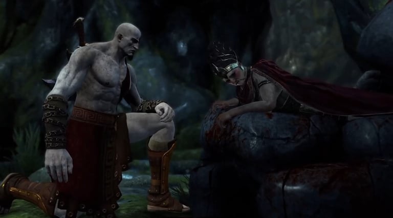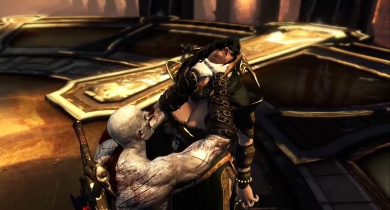 Mas Kratos já não é mais enganado por ilusões. Ele encara a dor de frente, recusa a mentira — e com sua fúria renovada, quebra o pescoço de Tisífone e esfaqueia Alecto até a morte, pondo fim ao reinado das Fúrias.
